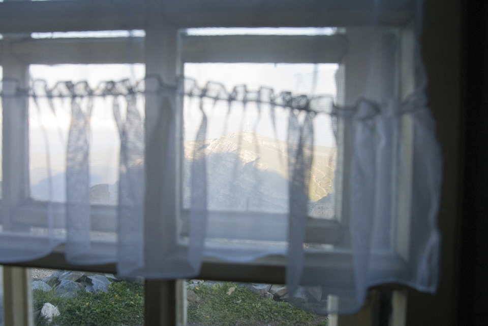 2505 méteren, felhőben az Omu csúcs, menedékházával.