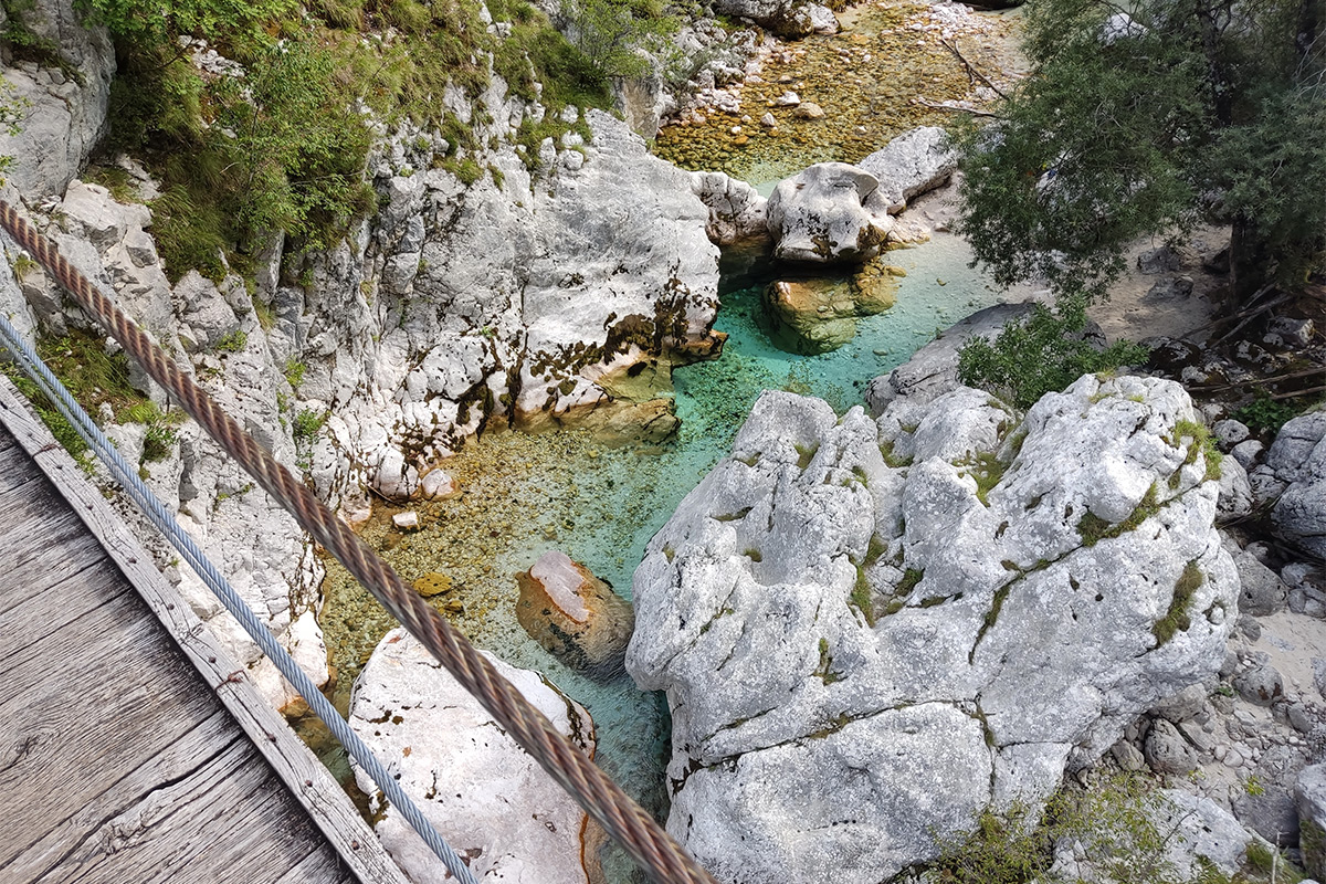 A Szocsa-völgye fantasztikus. Rengeteg függőhíd, túraútvonalak indulnak mindenfelé. A meder néha széles, most ráadásul elég kevés vízzel benne, de néhol összeszűkül, és látványos medencéket vály a sziklákba.