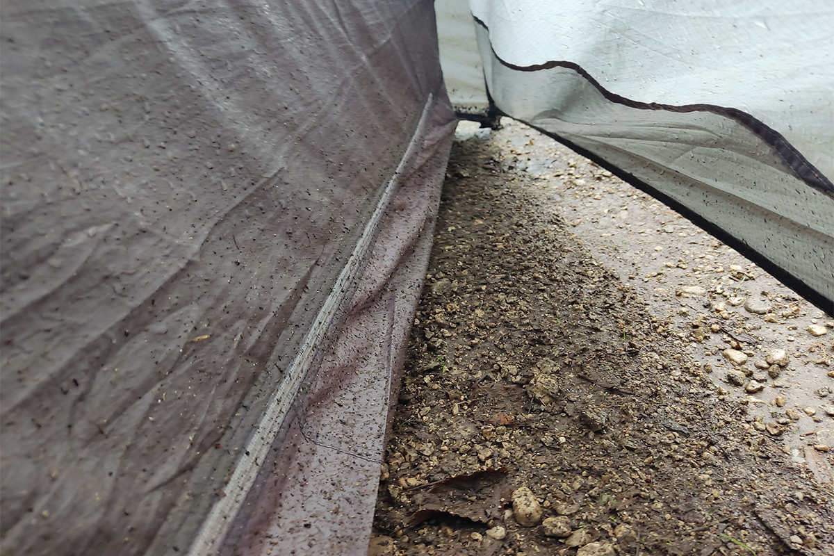 Az éjszaka az eső ellenére kellemesen meleg volt. Sajnos éjjel újra rákezdett az eső. Reggel is esett, amikor megszólalt az ébresztőm, úgy hogy tovább aludtam. Végül csak tizenegykor tudtam először kibújni a sátorból. Szörnyülködve néztem, hogy az esőtől a csupasz föld miatt a belső sátram úgy egy arasz magasságig csupa sár, és a külső sátor sem néz jól ki.
