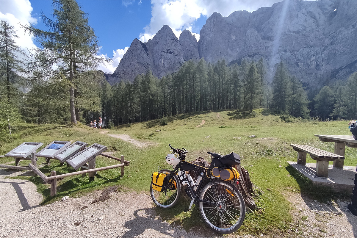 Jesenicétől 20 kilométert tekertem a Gozd Martuljek melletti Camping Spik-ig. Gondolkodtam, és arra jutottam, hogy a 20 országban több, mint 200 sátorban töltött éjszaka alatt ez az első eset, hogy másodszor alszom ugyanabban a kempingben. Becsekkoltam, majd kerestem egy sátorhelyet, olyant, ahol más bringások is vannak. Egy kanadai lánnyal kezdtem el beszélgetni. Június óta van úton, Írországból indult. Elmondása szerint Isztambulba tervezett elmenni, de most már unja, úgy hogy még leteker Splitig, onnan hajóval átmegy Anconába, és Velence lesz a végállomása. Reggel kaja mellett még beszélgettünk, így az is kiderült, hogy tavaly San Franciscoból tekert el Quebec-be. Most egyébként Bovec-ből érkezett a kempingbe, de nem a Vrsic-hágón, hanem Olaszország felé kelt át a hegyen. Ma a Bohinj-i tó a célja, aztán Ljubljana, majd irány a tenger. Még akár össze is futhatunk, mert én a tenger felől jövök majd Ljubljana felé két nap múlva.