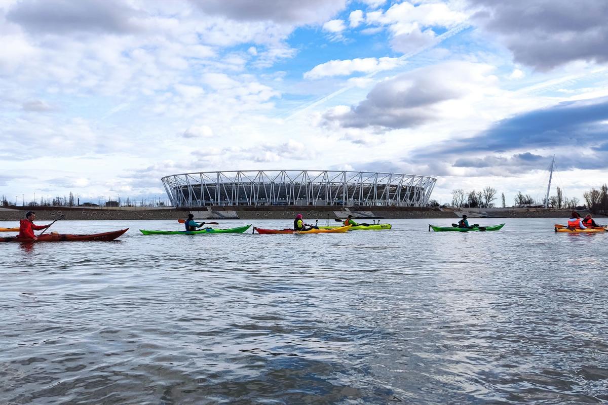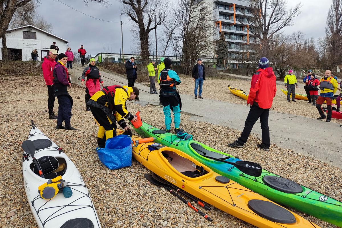 Az indulásra a Római-parton található Béke-csónakháznál gyülekeztek a kajakosok szép számmal. Egy részüknek az Explorers bíztosította a hajót, a többiek saját logisztikval csatlakoztak, mint például mi is. Mindig igényel némi agyalást, ha az ember egy evezést követően nem ott köt ki, ahonnan elindult, és a kajakot vissza kell valahogy juttatni. Ezt végül úgy oldottam meg, hogy korábban kivittem a hajót a csónakházhoz, majd a #theadventurousdacia-val elmentem a Kopaszi-gáthoz, leparkoltam. Ferenccel, akivel ott beszéltük meg a találkozót, ezt követően bevágtuk magunkat egy GreenGo-s eUp-ba, és visszaautóztunk a Római-partra.