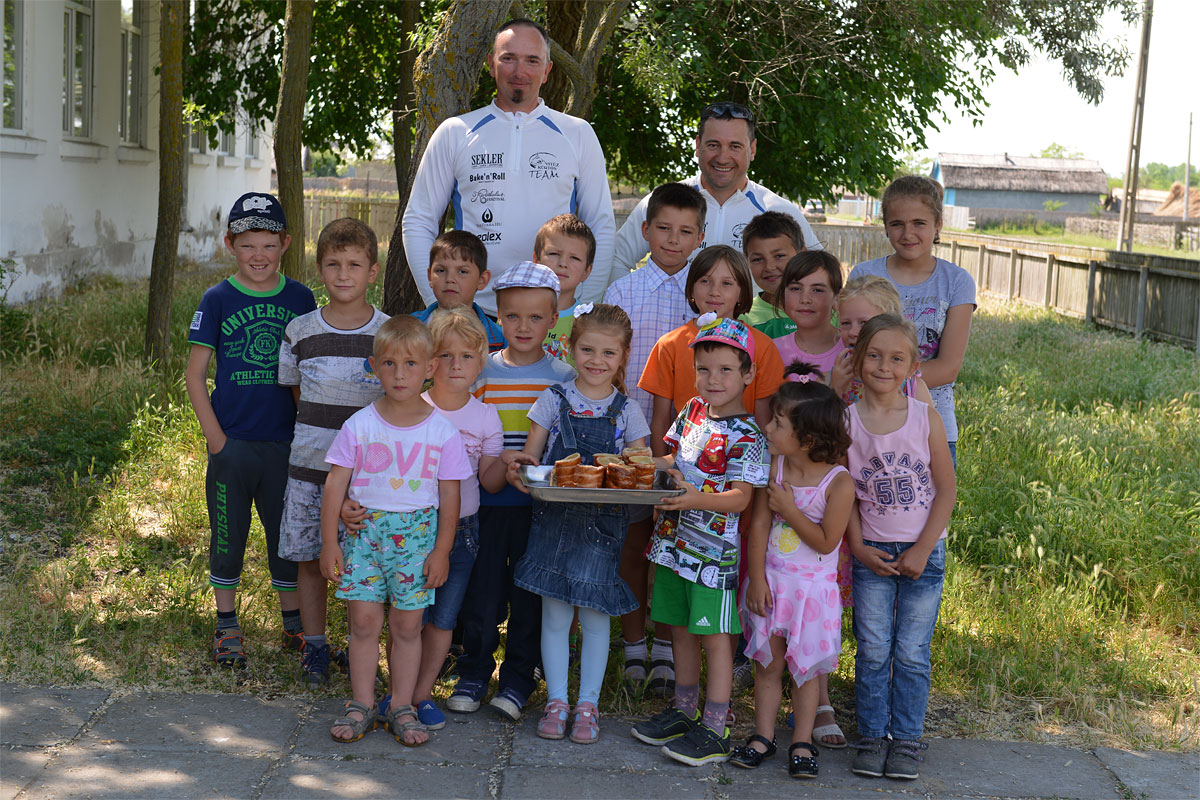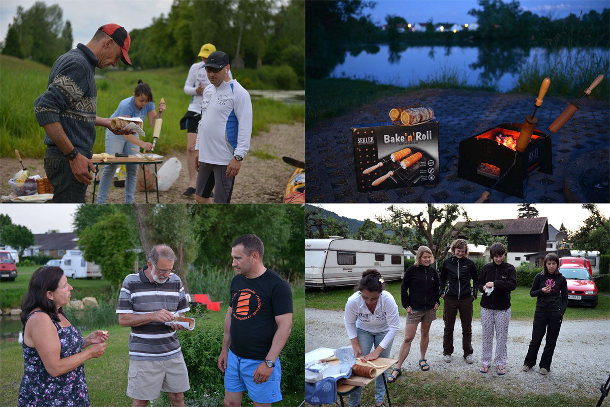 A Vitéz Kürtős Team túrái során megszokott, hogy ahol tudunk, sütünk kürtőskalácsot. Nagy segítségünkre van ebben az általunk tervezett, gyártott és forgalmazott, hordozható mini kürtőskalács sütő. A Bake'n'Roll természetesen a Duna 2860 túrán is velünk volt. Összesen 85 darab kürtőskalácsot sütöttünk, jutott belőle a Donaueschingenben éppen arra járó helybélieknek, az Öpfingenben egy privát Duna partot számunkra biztosító horgászoknak, A Neustadt-i kemping lakóinak, a Passau-Bécs kerékpártúrát teljesítő lányoknak Obernzellben. És természetesen jótékonykodtunk is kicsit, amikor a Duna Deltában található Letea település kisiskolásait a szünetben megleptük ezzel a finomsággal.