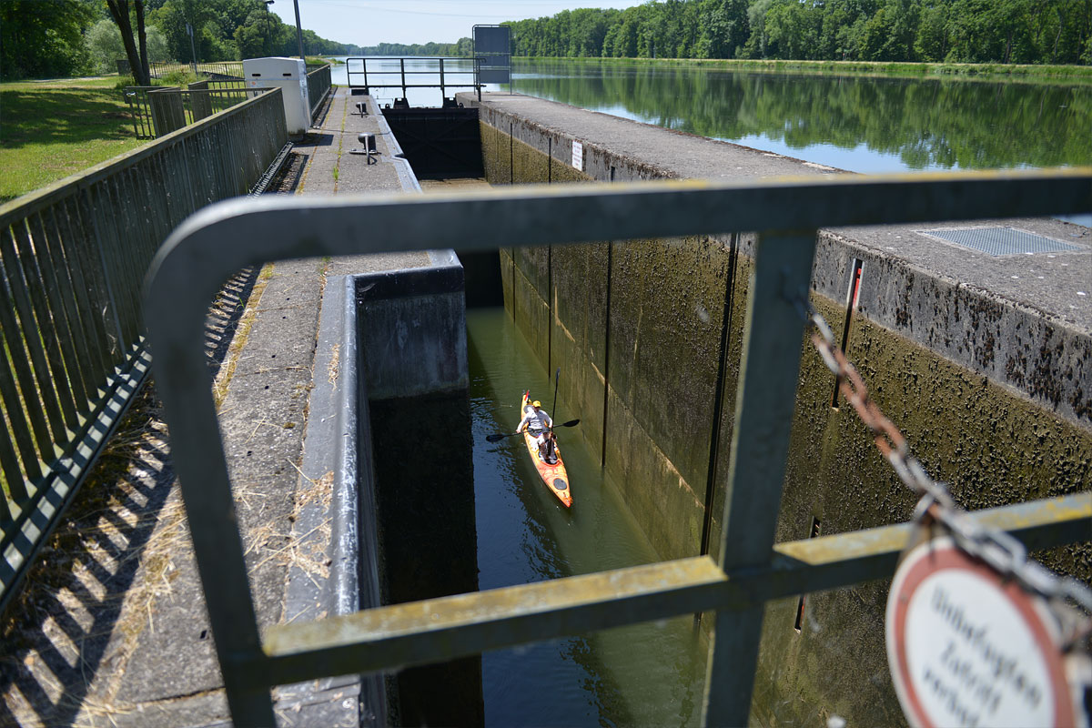 Ulm után, ahonnan kishajókkal már hajózható a Duna, megjelentek a zsilipek. Ezek még viszonylag kicsik, és önkiszolgáló üzemben működnek. Az ember behajózik a zsilipbe, kiszáll, felmászik a létrán, odamegy az irányítópulthoz, a kart átfordítja a másik állásba, és úgy 20 perc alatt záródnak-nyílnak a zsilipkapuk, felöltődik vízzel, vagy éppen kiürül a zsilip, és lehet továbbmenni. Egyszer ki kellett próbálni, de sokkal gyorsabb átemelni a kajakot.