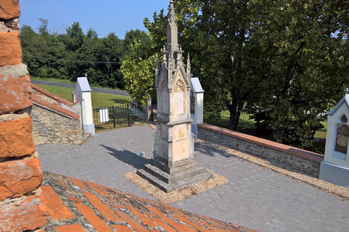 A hosszú mezei szakasz alatt igencsak megfogyatkozott a vizem. Ekkor már megint a kék jelzésén haladtam Mihályfa felé. Aztán a jelzés a falu előtt letért, látszólag kikerülte a falut, én viszont bementem, mert vizet kellett szereznem. Sajnos a faluban nem találtam csapot, és a bolt is zárva volt. Utolsó reményként a faluvégi temető felé kanyarodtam, ahol szerencsére volt is egy működő csap. A temető bejárata mellett volt egy sövénnyel körbevett parkocska. Ez, és a vízcsap annyira szimpatikus volt, hogy komolyan elgondolkodtam, hogy ott aludjak. Ha nyitva lett volna a bolt és tudok ételt venni, biztos maradtam volna. Így viszont, annak ellenére, hogy Sárvár előtt terveztem aludni, bementem a városba.