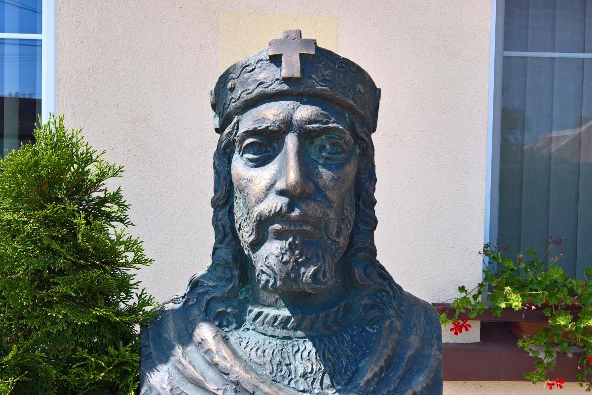 Sitkét szőlőkertek mellett hagytam el, és hamar Gércére értem, ahol a Polgármesteri Hivatal kapuján volt az egyik pecsételőhely. Az épület előtt egy szépen kidolgozott Szent István buszt nézett rám. Van még egy pecsételőhely a faluban, a Kismackó boltnál, én ott vizet tankoltam, és ettem egy banánt.