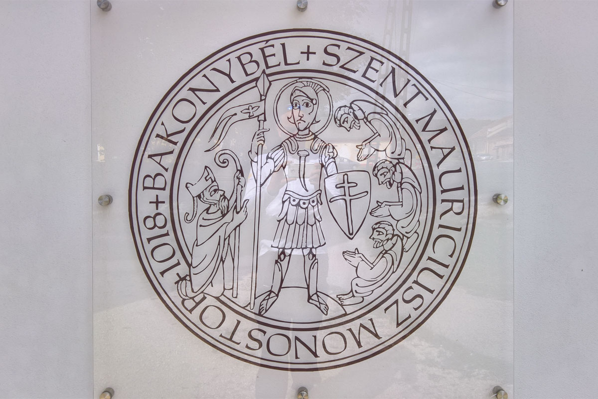A bencés monostort végül csak kívülről tudtam megnézni, a kapu zárva volt. Készítettem egy fotót a templomról és a címerükről, aztán tovább indultam Zirc irányába.