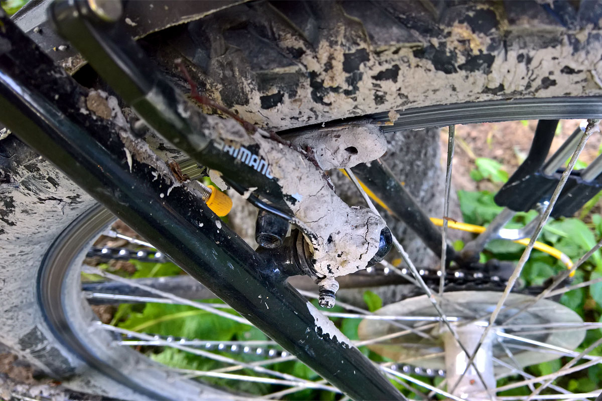 A bevásárlás után tovatekertem a falú széle felé, ahol második próbálkozásra meg is találtam az utat. Jónak tűnt, fenyőfák közt haladtam, de később voltak benne sáros részek, ahol elég nehezen jutottam át, én a keskeny útszélen, a biciklit pedig néhol a sáron keresztül tolva. Egy ideig felfelé haladt az út, aztán elkezdett ereszkedni Városlőd felé. Lefelé rosszabb volt a minősége, sok helyen mély árkokat mosott belé a víz.