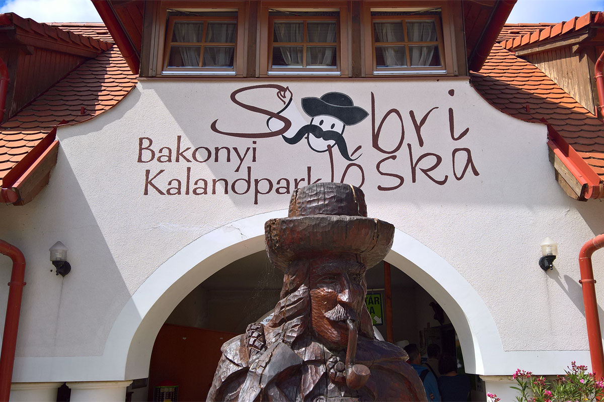Nem sokkal később, az útvonalból való felkészületlenségemből is adódóan meglepetésszerűen és zümmögve feltűnt balra egy nyári bobpálya felső szakasza és gépháza. A kék jelzés és az út a Városlőd melletti Bakonyi Kalandpark kerítése mellett vezetett. A park névadója Sobri Jóska, aki Pap Józsefnéven született 1810-ben, és a maga idejében rettegett útonálló volt, aki később legendás, főleg a Bakony erdeiben bujkáló dunántúli betyárvezérként vált közismertté. (forrás: Wikipedia)