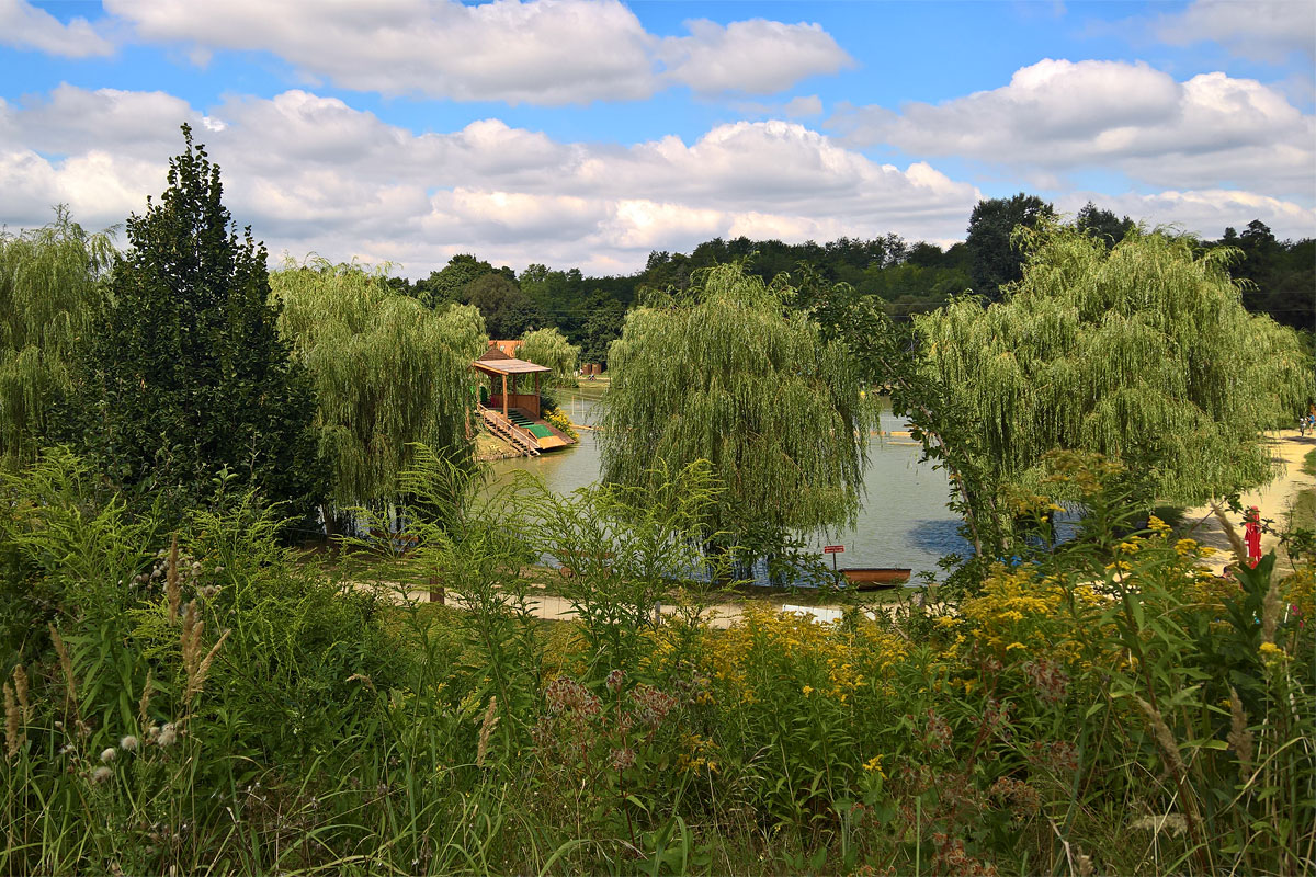 Városlődöt a kék jelzést követve hagytam el a főúton. A túraútvonal másfél kilométer után balra letért egy erdős részre, én viszont tovább tekertem Csehbánya irányába. A térképen azt láttam, hogy a Fő utcán tovább haladva hamarosan újra belefutok a kék jelzésbe, csak furcsa módon az utca nem volt folytonos. A faluban kiderült, hogy van ott egy völgy, és egy tavacska, illetve az is, hogy amit a térkép tovább is Fő utcának jelöl, az a valóságban egy virágos mezei út.