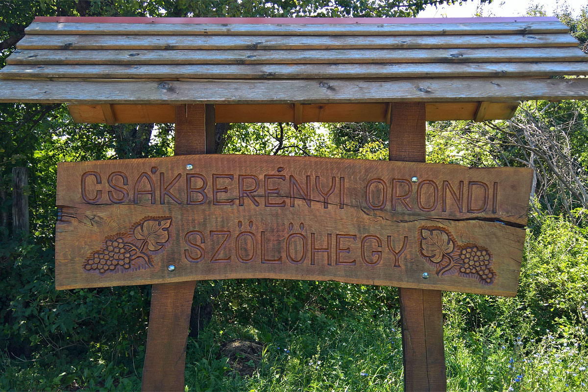 Fél tízkor indultam útnak. A kék jelzés a parkból felfelé ment tovább, az erdőben, egy meredek, köves erdei úton. Gondoltam, megpróbálkozom vele, reggel még bevállalósabb vagyok. Úgy kétszáz métert tekerhettem felfelé, amikor rá kellett jönnöm, hogy ez sem az a szakasz, amit biciklivel teszek majd meg. Visszafordultam tehát, visszagurultam a parkba, onnan a faluba egy darabig, majd balra fordulva, a szőlőkertek alatt Csákberény felé vettem az irányt.