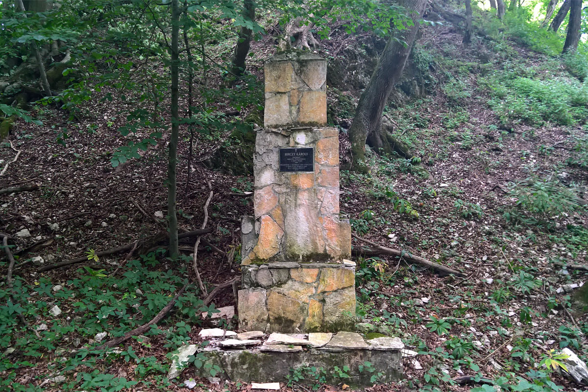 Vérteskozma előtt indul az út Szárliget felé. A térkép itt is jelölt egy emlékművet, amit a Magyar Munkások Turista Egyesülete 1929-ben emelt elhunyt társuk, Hirczy Károly emlékére. A 2003-af felújítás ellenére az emlékmű szétesőfélben van.