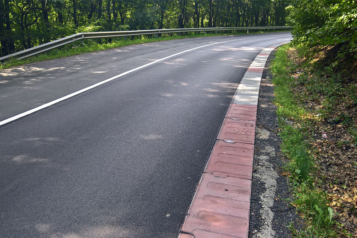 Az egyes úton elmentem a tarjáni letérőig, arra folytattam az utamat. Az autópálya alatt áthaladva egy szerpentinen kapaszkodtam fel a domboldalban, miközben versenypályán érezhettem magam, hiszen az út szélén, a belső ívekre piros-fehér rázóköveket telepítettek.