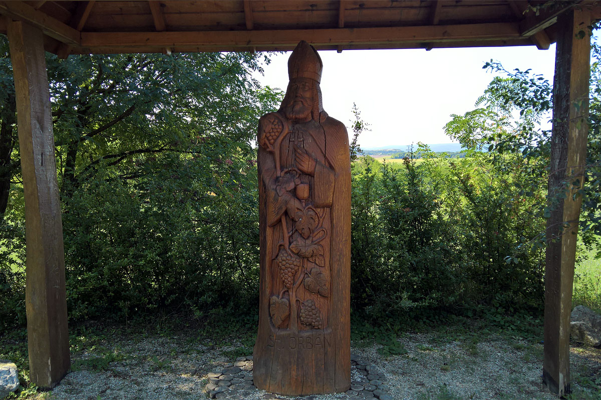 Valamivel odébb a gazdák a szőlőművelők védőszentjének, Szent Orbánnak állítottak szobrot. A szobor mellett szilvafa, roskadásig tele szilvával. Letámasztottam a biciklit, és teleettem magam.