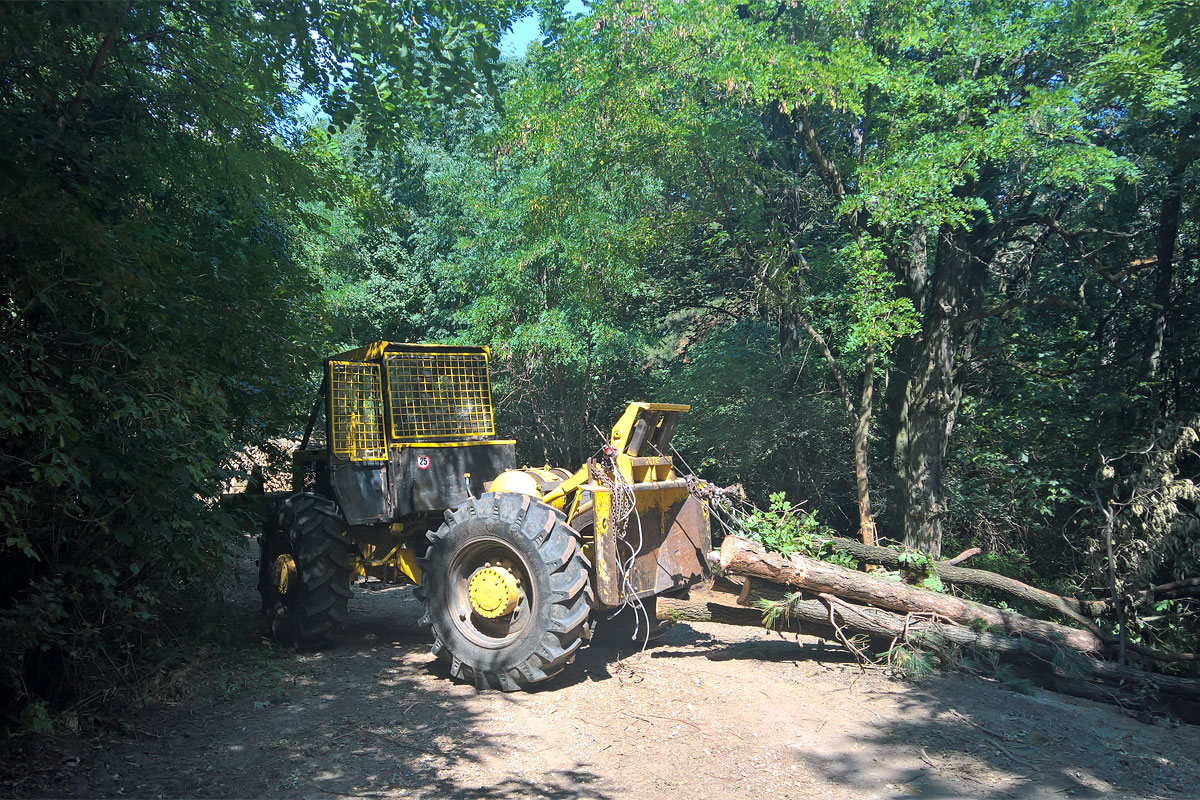Rácsöngettem, meghallotta, és odébb ráncigálta a hozzá kötött farönköket. Pár méterrel odébb három favágó aprította az előző rönk köteget. Az utat vastagon fűrészpor borította, mellette farakások sorakoztak.