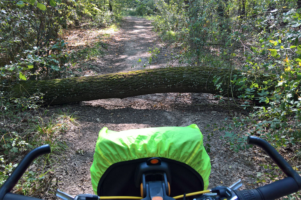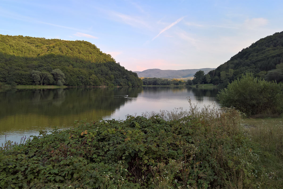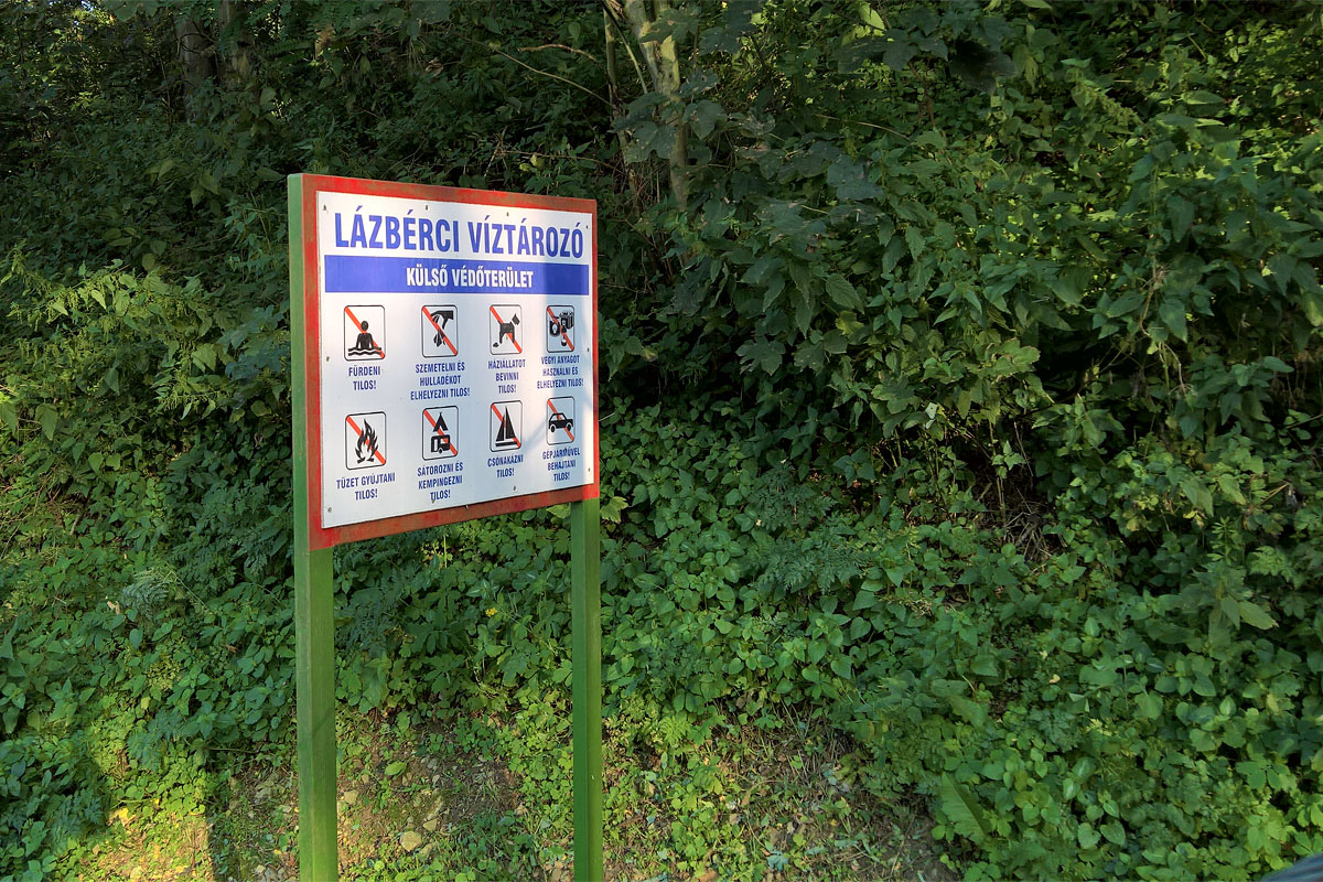 Az út sokáig a tó mellett haladt, amit viszont csak a fák között lenézve lehetett látni. A parton elég sok horgászt láttam, és emiatt nem igazán értettem meg a sátorozási tilalmat. Mármint értem, hogy víztározó, meg védterület, ez rendben is van. De akkor miért lehet horgászni, mi az a víztározóra nézve káros vagy veszélyes tevékenység, amit egy sátorozó csinál, egy horgász viszont nem?
