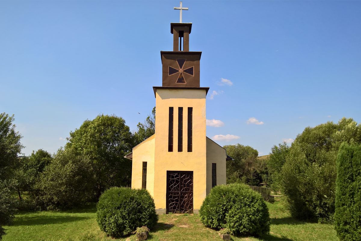 A már említett emelkedő után egy rövid szerpentin következett, aminek az aljába belefutottam a kék jelzésbe. Itt érkezett a mezőn keresztül, és az úton ment be Zádorfalvára, ahonnan aztán megint a dombok között, Gömörszőlőst érintve ér be Kelemérre. Zádorfalván megint volt egy gyenge próbálkozás, hogy tovább kövessem a jelzést, de csak a katolikus templomig jutottam (fenti kép). Valahogy nem volt kedvem most zötykölődni a dombokon keresztül, és a korábbi tócsás tapasztalat is óvatosságra intett, nem biztos, hogy elég szárazak a mezei-erdei ösvények a biciklizéshez.