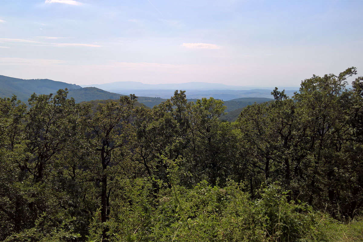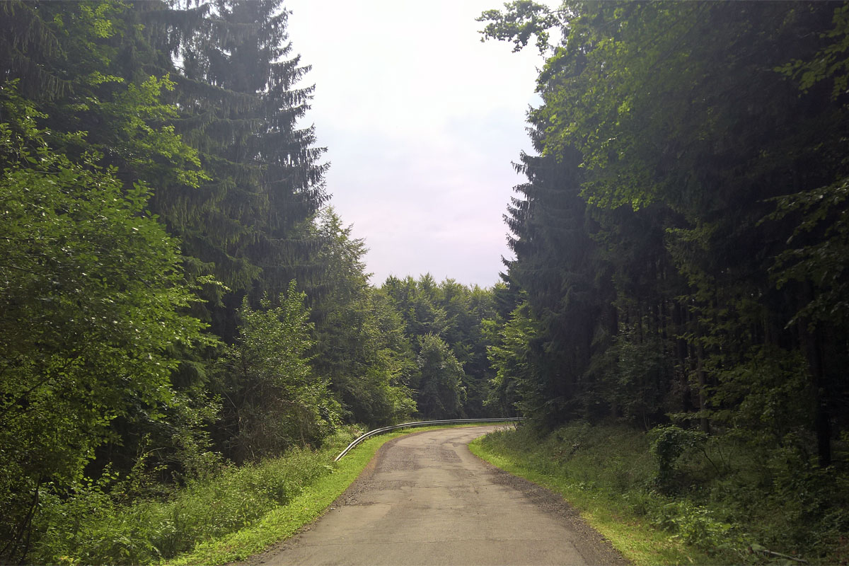 Az olasz kapun túloldalán egy sorompó volt, odáig lehet feljönni autóval. Volt neki egy társa is valahol feljebb az úton, talán még Bánkútnál. Innen egy 12 kilométeres ereszkedés következett. Mondanom sem kell, ezért (is) szeretek feltekerni valahova magasra, mert tudom, hogy utána csak gurulni kell lefelé. Korábban írtam, hogy a 12 kilométer felfelé 2 órát vett igénybe. Ugyanaz lefelé? Negyven perc alatt bent voltam a Szalajka-völgyben, úgy, hogy közben megálltam panorámát fotózni, ahol éppen nem a fák között kanyargott az út.