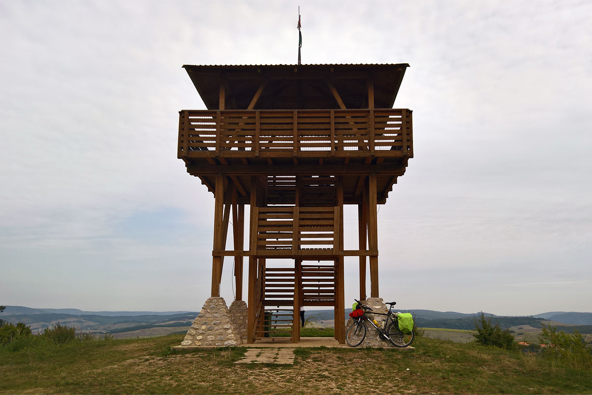 Megálltam egy pillanatra a Millenium-kilátó alatti parkolónál is. Volt pár autó, fának támasztva három bringa is, gondolom gyalog sétáltak fel a kilátóhoz. Nincs messze, talán kétszáz méter, de mivel pár éve már voltam fent, nem láttam értelmét újra felmászni.