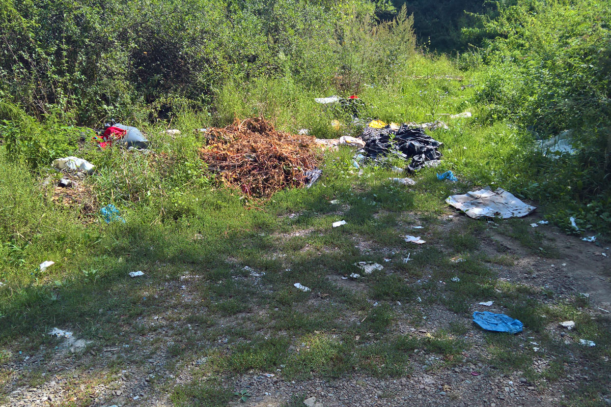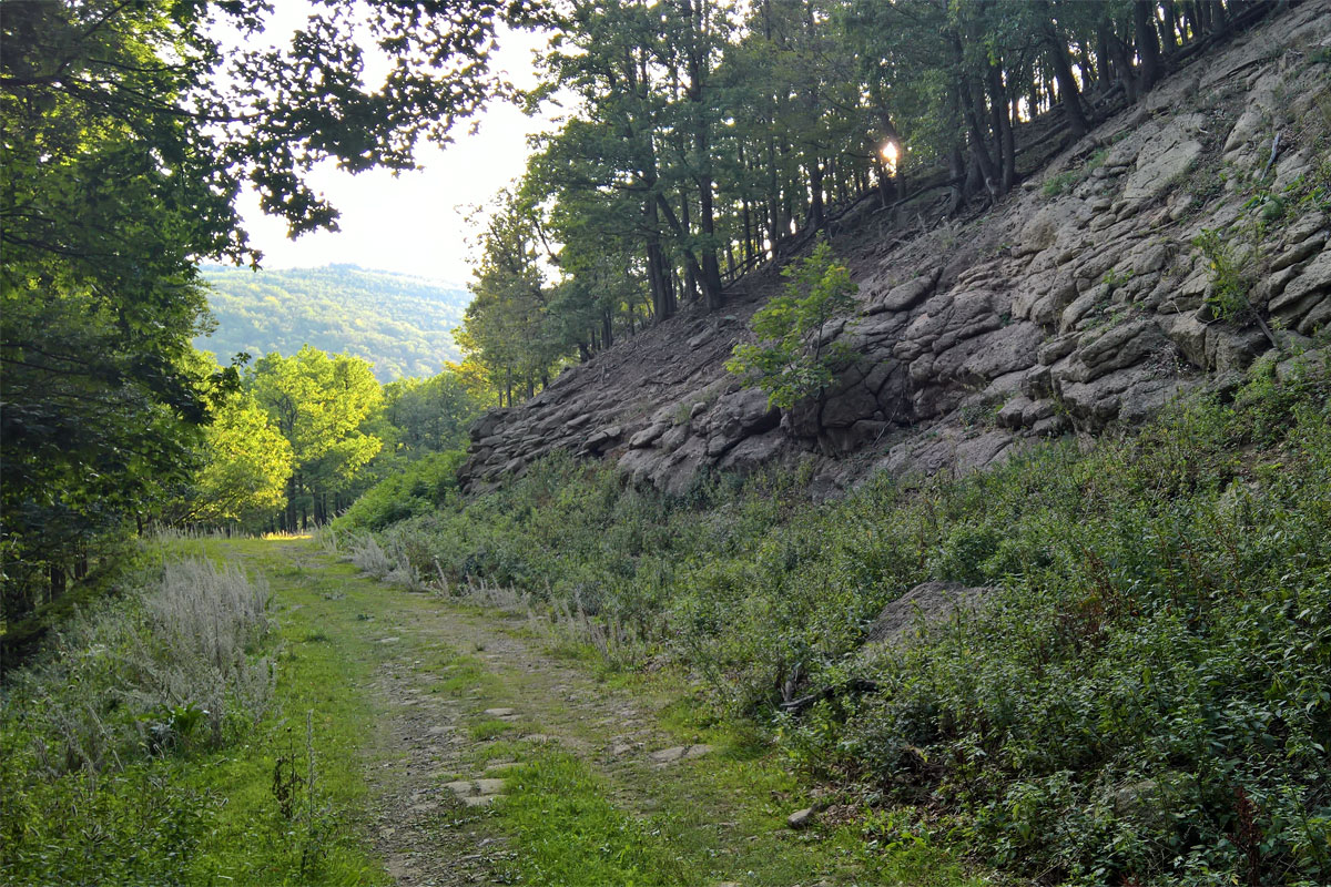 Újra erdőben haladtam, már inkább ösvényen, mint úton. Nemsokára felértem a gerincre, Szarvaskőtől mintegy 160 métert kellett emelkedni idáig. Lefelé előbb egy irtáson vitt át az ösvény, majd egy erdei úton mentem tovább, amely úgy három kilométer után beletorkollott a Bátort Egerbaktával összekötő országútba. Egy újabb kereszteződésnél Bükkszék felé fordultam, de szinte azonnal le is tértem a főútról, a kék jelzés jobbra, egy egysávos aszfaltozott erdei úton ment tovább Rozsnak-tanya felé, ahol egyébként egy Kéktúra bélyegző is található. Sajnos ezt a letérőt is szemétlerakónak használják, az alábbi látvány fogadott: