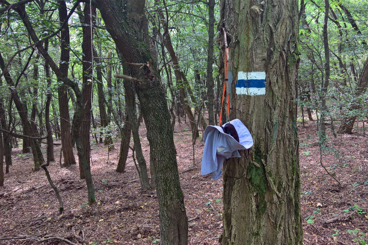 A Hármashatár erdészház után után jobbra tértem, aztán megint jobbra. Itt már közel jártam a kék jelzéshez, az ösvény pár méterrel feljebb haladhatott az út felett, az erdőben. Hétszáz méter körül egy ötös kereszteződéshez érkeztem. A kék jelzés egy keskeny, meredek ösvényen indult tovább felfelé, az út balra kanyarodott, de jobbra is volt egy leágazás. Úgy négy kilométerre lehettem a Kékes-tetőtől. Elővettem a telefont, hogy megnézzem a térképet. A nyomvonalak és a műholdas képek alapján is úgy látszott, hogy ha még három kilométert megyek az úton, lesz ott egy átkötés a túraútvonalra. Meredek ugyan, de rövid. Elindultam tehát tovább. Amikor azonban elértem a kinézett ponthoz, semmi mást nem találtam csak egy meredek domboldalt. Útnak, vagy akár ösvénynek nyoma sem volt. Az út lejteni kezdett, mentem még egy keveset, hátha lejjebb kezdődik, de sajnos rá kellett jönnöm, hogy ma másodszor szívattam meg magamat. A helyzet azért volt elkeserítő, mert itt továbbmenni nem volt értelme, mert ez az út Markazra vitt volna le, viszont a korábbi kereszteződéstől sem igazán tudok más utat a Kékes felé, mint a túra ösvényt. Mégis az volt az egyetlen megoldás, hogy visszatekerek a kék jelzésig. Újabb hat felesleges kilométer, miközben, ahonnan visszafordultam, az a hajtűkanyar légvonalban mindössze 500 méterre volt Kékes-tetőtől.
