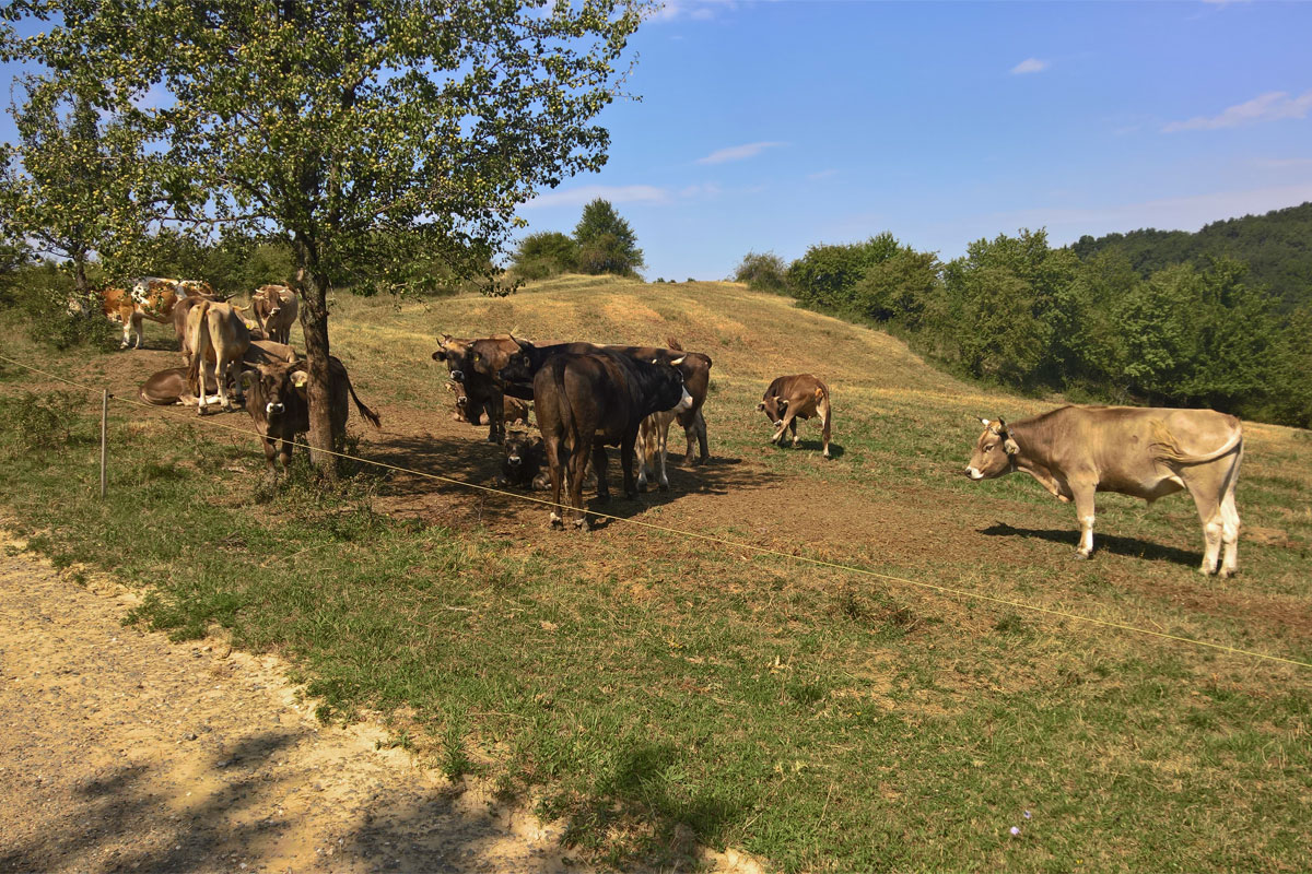 Miután visszagurultam úgy két kilométert, már a jó úton, a Cservice-patak mellett, újra elindultam felfelé. A következő 12-13 kilométer kitartő tekeréssel telt, és mintegy három órán keresztül tartott. Ezen a szakaszon léptem át a már említett ezredik kilométert. Ötszáz méter fölé emelkedve kereszteztem először a kék jelzést, de mentem tovább az erdei úton, hiszen az túraútvonal itt majdhogynem a gerincen megy, fel-le a kisebb-nagyobb csúcsok között. Az erdei út ugyan nagyobb távolságon, de egyenletesen emelkedik felfelé, és biciklizhető.