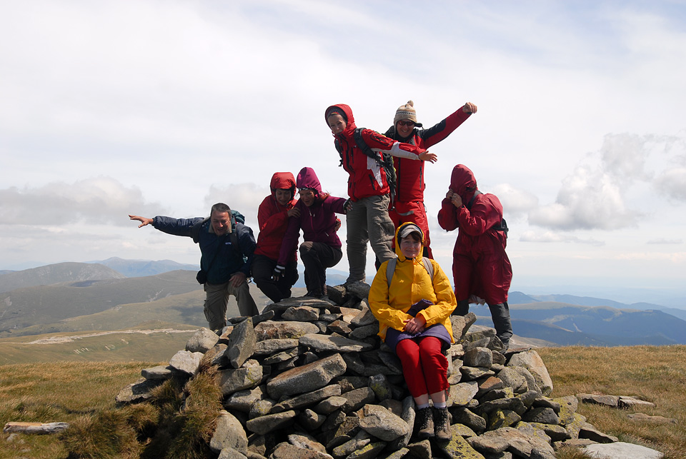 Készítettünk egy csoportképet, de nem volt egyszerű sem felmászni, sem fent maradni a kőhalmon. Nem is maradtunk sokat, én lőttem még pár fotót, aztán elindultunk vissza, az autókhoz. A Muntinu-Mohorul távolság mindössze három kilométer körüli, két óra alatt megjárható oda-vissza.
