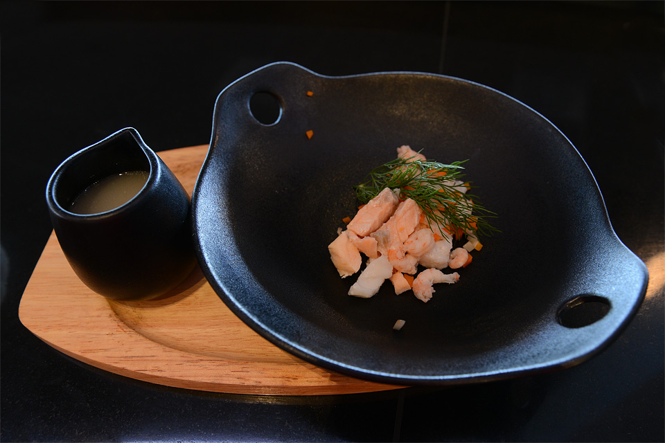 Közben megkaptuk a levesünket, ami enyhén szólva egészen más volt, mint amire számítottunk: egy designerleves, ráadásul DIY (Do It Yourself - csináld magad) tálalásban, azaz levesenként 149 koronáért még nekünk kellett összeönteni a levet a sűrűjével. Mit ne mondjak, jól nem laktunk, de a leves nagyon finom volt.