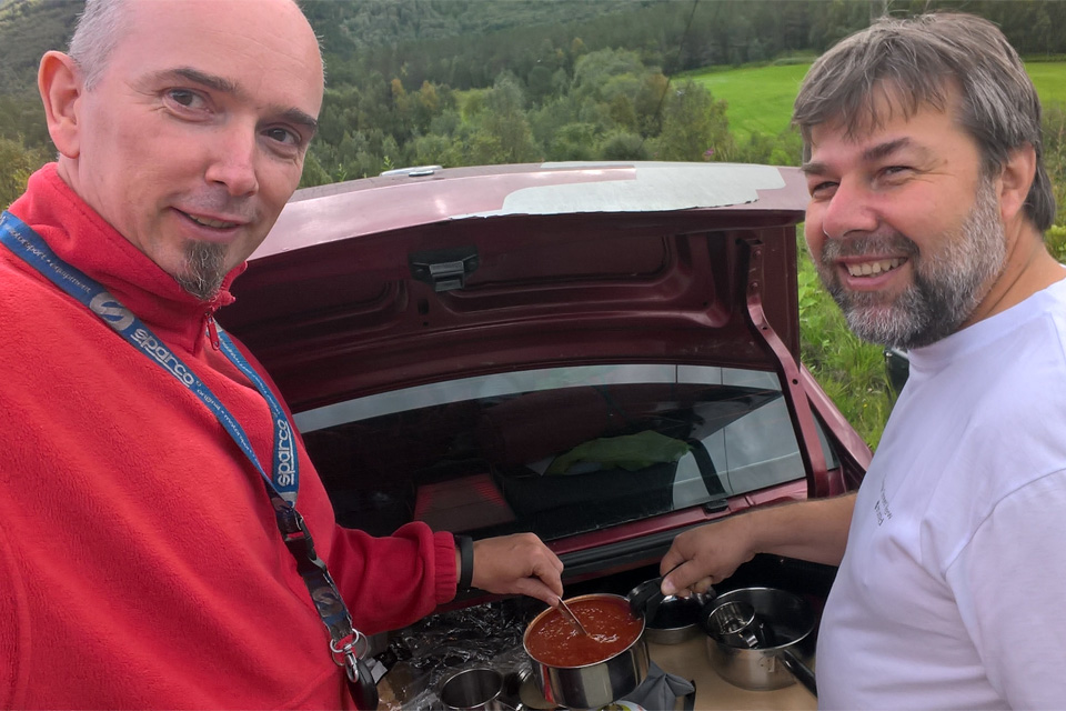 Úgy nézett ki, hogy reggel, délelőtt az eddigieknél korábban el tudunk indulni, de végül mire mindennel végeztünk épp elmúlt dél. Nagyjából 800 kilométert kellett volna megtennünk a következő két napban, hogy vasárnap estére Sandnessjøen érjünk, ahova egy székelykeresztúri származású ismerős invitált, hogy látogassuk meg. Ezért azt találtuk ki, hogy addig megyünk, amíg nem fáradok el, akár egész éjjel is, aztán reggel keresünk egy helyet, ahol Antal dolgozhat, én pedig az alatt kialszom magam.