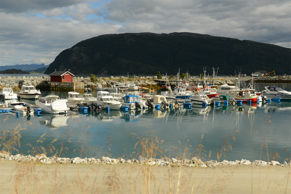 Szóval a kompos részt választottuk, mert így kisebb szakaszon kell majd oda-vissza menni Sandnessjoen felé. A fjord mellett haladva láttuk, hogy nagyon hullámos a víz, és éreztük a szelet is, mondtam is Antalnak, hogy ez az átkelés lehet hogy nem lesz olyan sima, mint az eddigiek. Arra viszont nem gondoltam, hogy nem fog járni a komp, pedig végül ez a forgatókönyv valósult meg. Öt óra körül már ott voltunk Nesnában, ahonnan, a kompot leszámítva alig 30 kilométer Sandessjoen. Meg is érkezett a komp, csak éppen nem tudott kikötni, állítólag az oldalmotorok nem tudták kompenzálni az erős oldalszelet. Visszahajózott hát Levangba, a rajta lévő autókkal együtt. A tábláról törölték a kompot. Azt javasolta egy autós, hogy jobban járunk, ha körbe megyünk, de ez a körbe itt több, mint 170 kilométert jelentett volna. Nekem ehhez semmi kedvem nem volt, úgy hogy maradtunk. Lássuk csillapodik-e a szél, ha nem, akkor legfeljebb itt alszunk. A következő kompig volt idő, úgy hogy elmentünk a kempingbe, de a tulaj nem volt szimpatikus, és nem csak azért, mert nem kért a panoráma fotózásból. Visszamentünk hát a kikötőbe, és beültünk a büfébe vacsorázni, mert közben a következő kompot is törölték. Antal maradt a büfében, amíg a zárásnál ki nem rakták. Én az autóban próbáltam írni. Az utolsó lehetőség közeledett, megint elkezdtek sorba állni az autók. Beálltunk mi is a sorba, szundikáltunk, mígnem eljött az az indulás időpontja, de végül ezt a járatot is törölték.