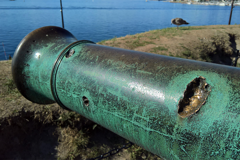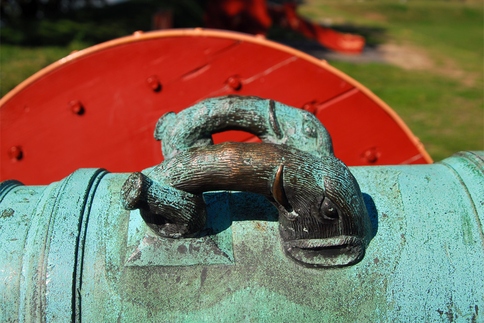 Az erőd nagyon látványos, barátságosak a fűvel borított falak, amelyeken lehet mászkálni. A várfalon ágyúk sorakoznak, némelyeken golyó ütötte sebek, és ha jól láttam, mindegyiken elefántfejet és ormányt formázó fogantyúkkal.