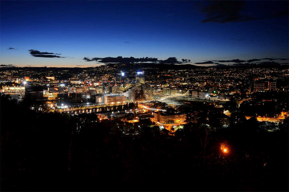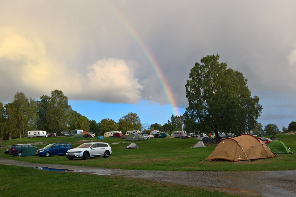 Oslóban először egy hotelt néztünk meg a belvárosban, de kiderült, hogy a City Box egy automata szálló, ahol recepció sincs, nemhogy illetékes személy, aki dönthetne a panoráma fotózásról. Elautóztunk hát az Ekeberg kempingbe. A kemping egy hatalmas parkban van a város felett, gyönyörű kilátás nyílik mellőle Oslóra. Sajnos a hely nagyon személytelen, és azt kell mondjam, hogy abszolút profitorientált, a sátorhely autóval ugyanannyiba került, mint egy lakóautós éjszaka. Messze ez volt a legdrágább kemping az utunkon, és a 380 koronás ár mellett az egyszeri meleg zuhanyért is fizetni kellett 15 koronát fejenként.