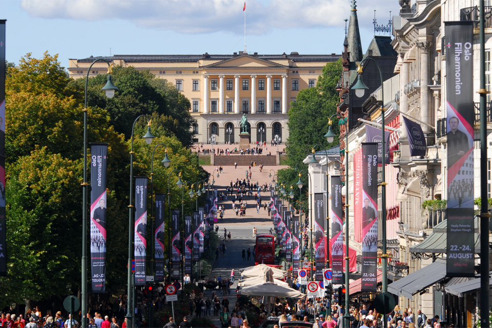 Az Operaháztól visszasétáltam a dómhoz, majd a turistákkal tömött Karl Johans utcán mentem a Kormányhivatal épülete felé. A távolból késztettem egy képet a királyi palotáról is.