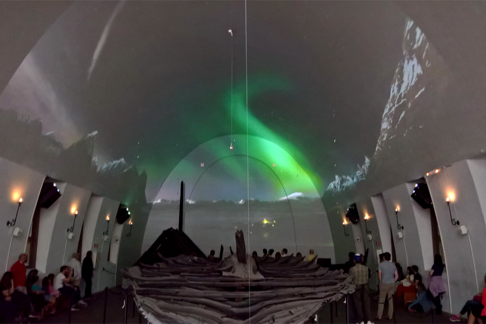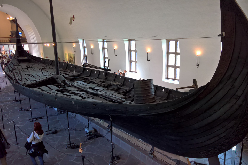 Felültem hát egy buszra, és utolsó célpontként kimentem a Bygdoy félszigeten található Viking Hajó Múzeumhoz, ahol a három viking hajó mellett más járműveket, szekeret, szánokat, illetve viking használati tárgyakat lehet nézegetni, valamint egy érdekes, az épület egyik szárnyának falaira, mennyezetére vetített térhatású filmmel betekintést lehet nyerni a vikingek életébe, temetkezési szokásaikba.