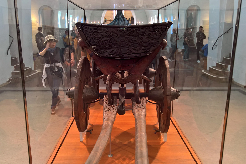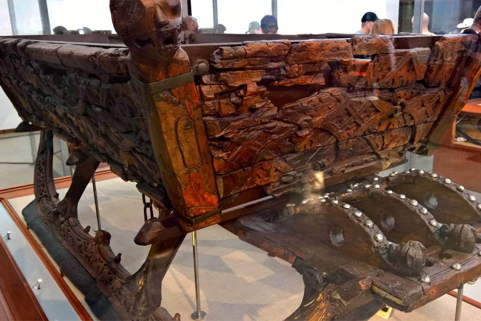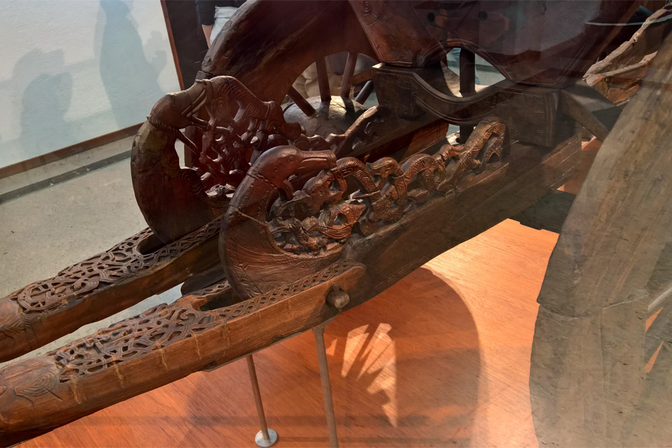 Nem sokat tudtam eddig a vikingekről, így nagyon meglepett hogy mennyire gazdagon díszítettek voltak főleg a járművek: a kiállított szánok mindegyikét és a szekeret is teljes egészében faragások borították.