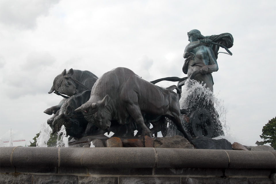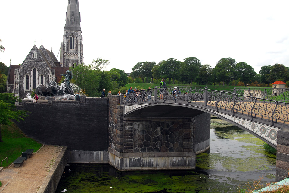 Dél felé sétálva készítettem egy képet a park mellett állomásozó hajó jókora mentőcsónakjáról, amit nyugodtan lehetne mentőhajónak is nevezni, majd a St. Alban-templom mellett lévő Gefion-szökőkútról, amit a Carlsberg Alapítvány adományozott a városnak a sörfőzde alapításának 50. évfordulóján.
