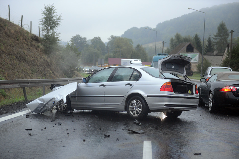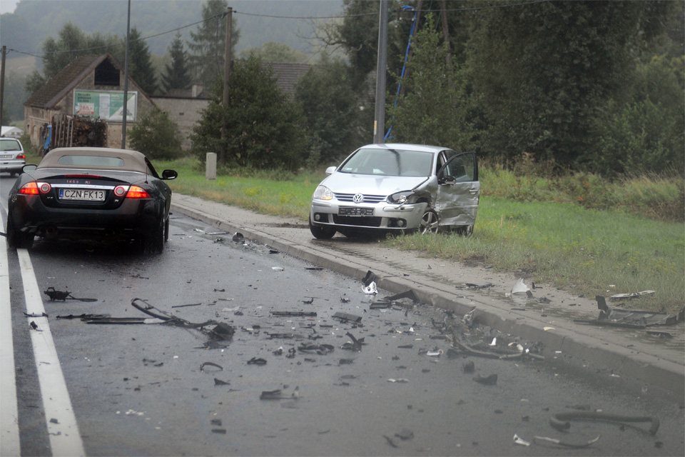 Görlitzből elindulva már szemerkélt az eső, ami aztán egyre erősebb záporrá változott. Sajnos a vizes úton egy baleset is történt. Egy település felé ereszkedve egy erősebb lejtőn a távolban füstöt láttunk felszállni, majd a nem sokkal előttünk haladó három-négy autó vészvillogóval megállt. Ezt tettük mi is, az úton törmelék, olaj, és három összetört autó állt. Az utasok már kiszálltak, úgy tűnt nincs komolyabb sérült. A BMW nagyon füstölt, valaki kérdezgette az érkező autókat, hogy van-e kulcskészletük. Visszaszaladtam az autóhoz, fogtam a szerszámos ládámat, és leszereltem az akkumulátorról a kábeleket.