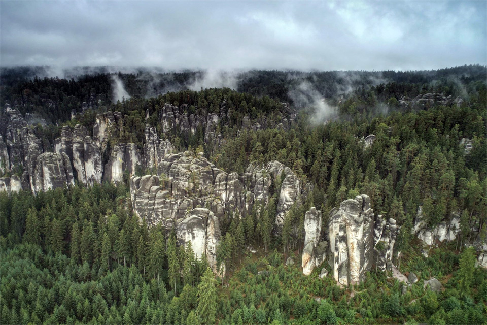 A parkhoz is szakadó esőben értünk, így hamar arra a következtetésre jutottunk, hogy így nincs értelme bemenni. Ezen bakancslistás tételem mellé így nem kerülhetett pipa, vissza kell majd jönnöm valamikor. Egy Prága - Teplice-sziklák hétvége nem is hangzik olyan rosszul. A sziklák egyébként lényűgözőek, pár képet tudok mutatni, mert miután megebédeltük a büfénél és elállt az eső, elsétáltunk a bejáratig, és Antal repült egyet a Phatommal is.